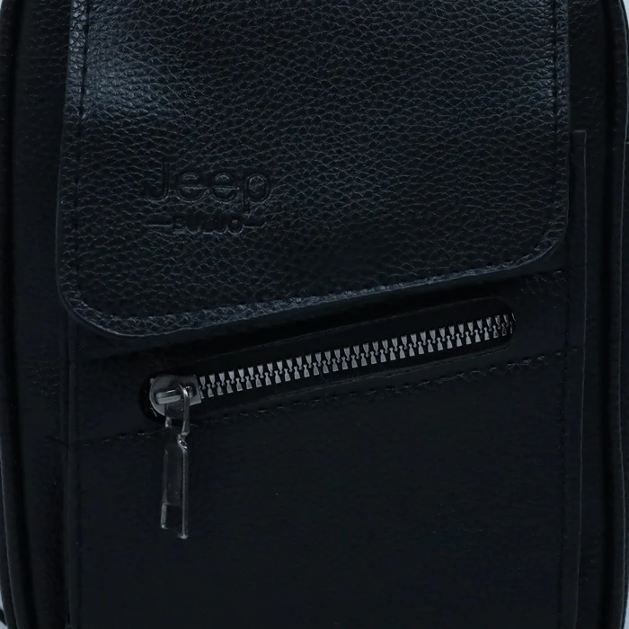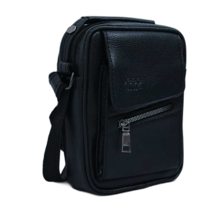 کیف دوشی مردانه چرم مشکی زیپ نما کد01